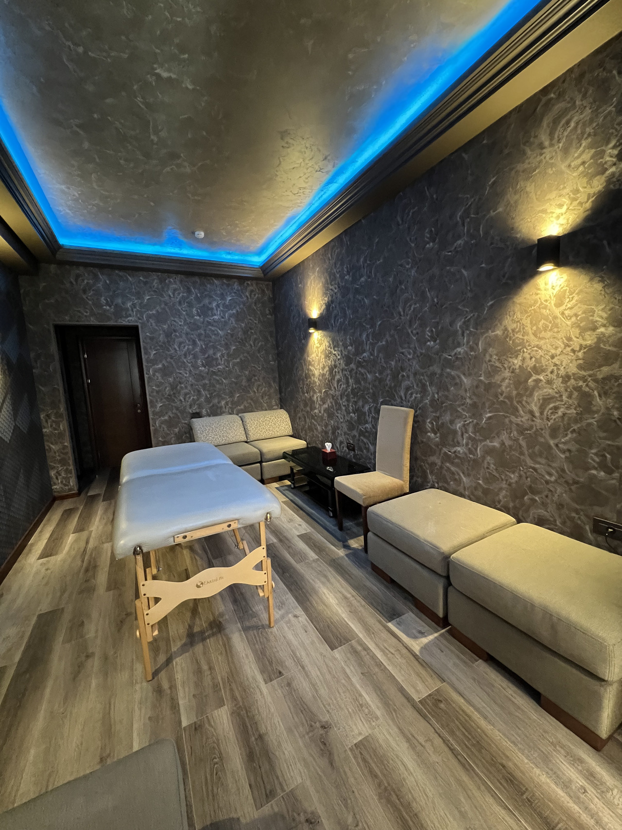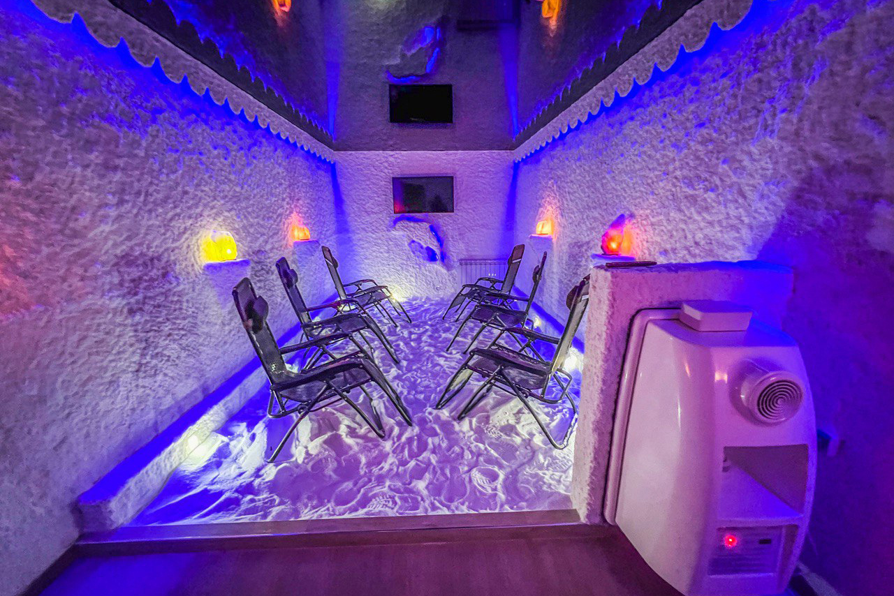The salt room is completely covered with salt. The therapy is based on the inhalation of salt microelements. Therapy is good for: