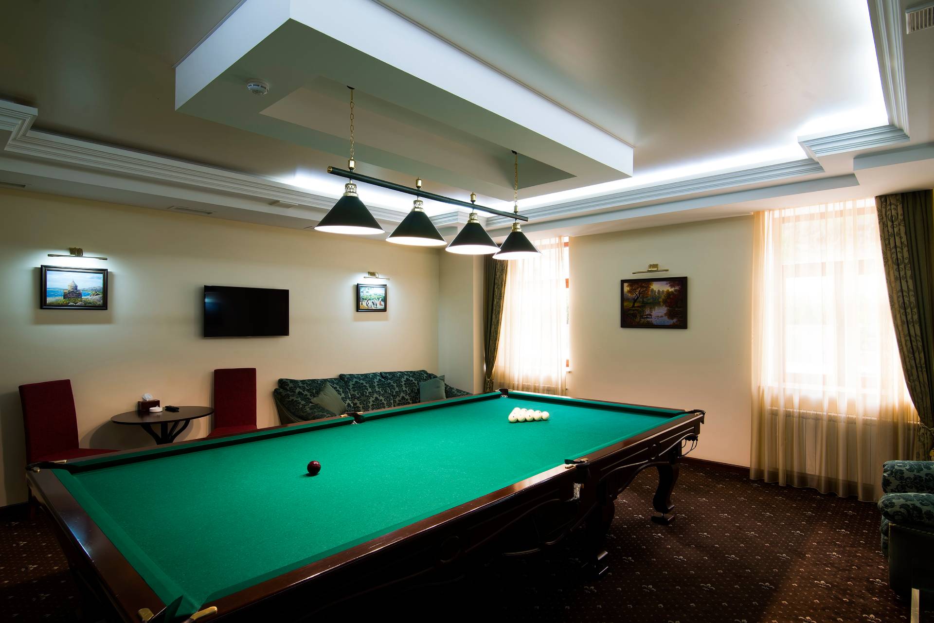 We offer our guests a separate billiards room. This is a paid service: 4000 AMD / hour. You can rent billiards room at the reception.