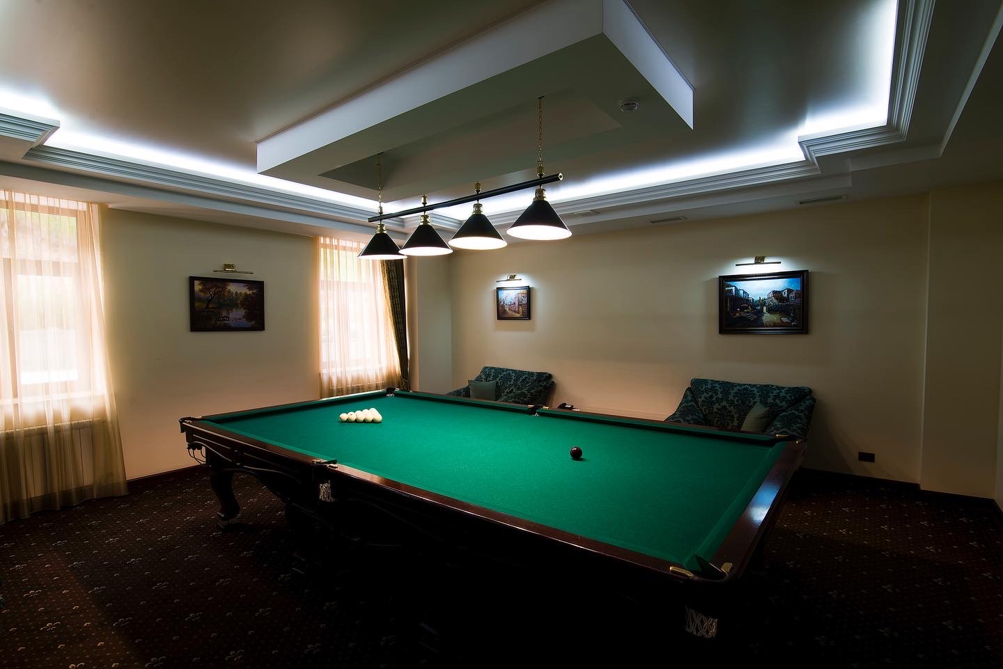 The billiard room for our guests is open from 10: 00-22: 00. Here, in a cozy environment, you can spend time with a favorite game. If necessary you will be served a meal, snacks and drinks.